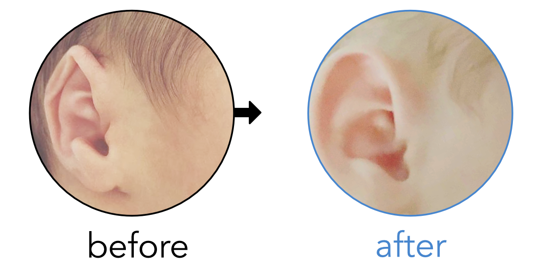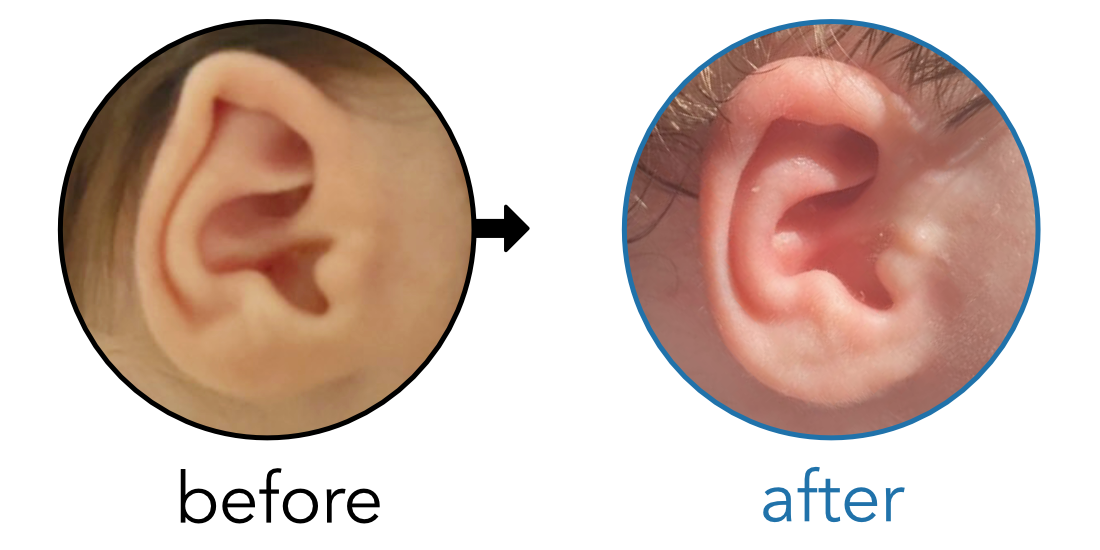 “I just wanted to share a pic of our EarBuddies results!! My son was 4 months old when we started. I was afraid it would be too late, but after only 20 days wearing the EarBuddies, his conchal crus was GONE. Two months later and it still looks as perfect as the day we took them out. THANK YOU!!”