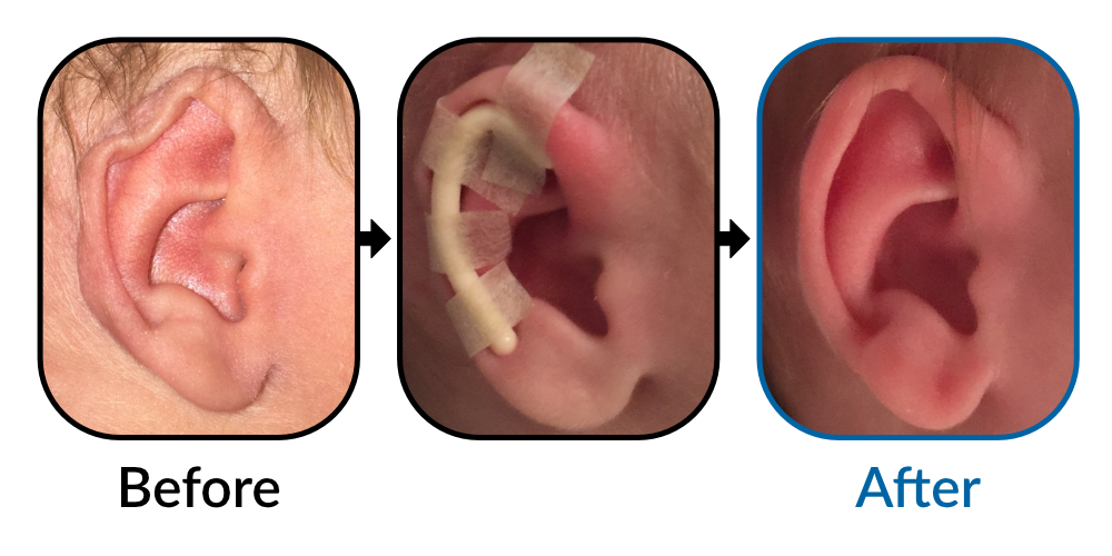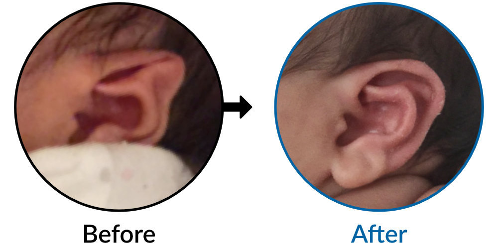 When a baby is born, the cartilage framework of the ears is extremely soft because of Mum’s hormones. Some squashing of the ears is natural during birth, but if the ears remain an odd shape after 48 hours, or if they start to stick out, this will quite quickly become permanent as the cartilage naturally hardens. EarBuddies splints re-mould the cartilage folds in a baby's ears to restore the natural curves and hold the ear close to the side of the head. When the framework hardens in the controlled shape, there is a permanent, surgery-free correction.